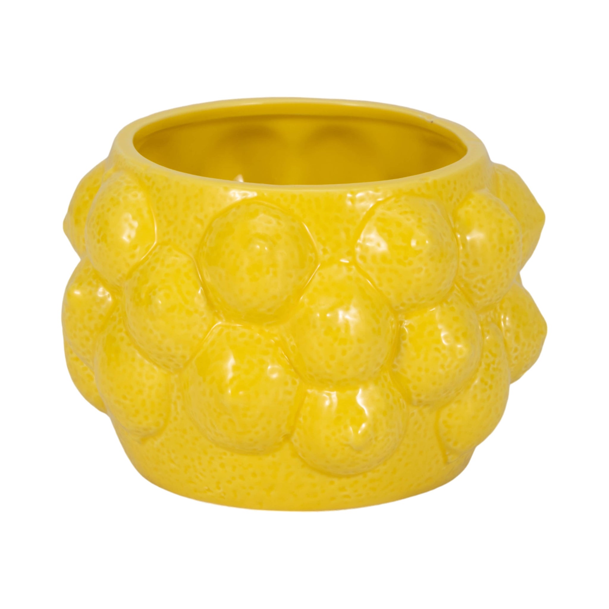 Planter Pot - Yellow Ceramic Solid Lemons Flower, 7 in.
